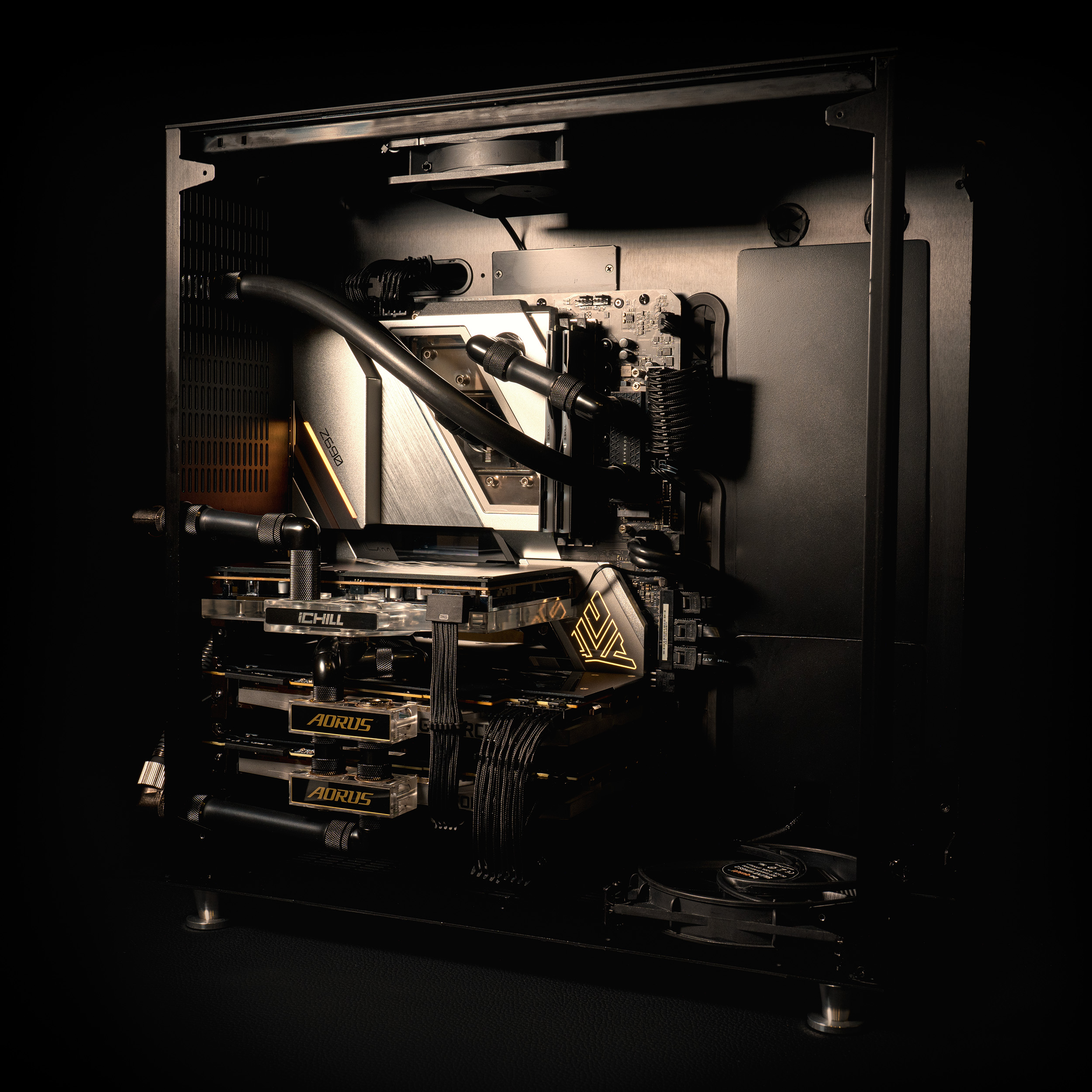 also davon würde ich gerne mal ein Bild bzw. ein paar mehr Detailbilder sehen wenn es nicht zu viel Arbeit machtallein für die PC Komponenten zuständig ist.( 3 Meter Schlauch + CPU + Mainboard + SSD + GPU + GPU + GPU)