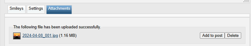 It took me a while to figure out how to add an image to a post in this forum. I would see a post where someone had included an image in their post, then click on the Quote button so I could see what they did. Then I would do the same exact thing, and it would not work. What I finally figured out is if I click on Attachments and upload a PNG file, then click in the post box and select Add to Post, it works. If I upload the sane image as a JPG file and do the same thing, it does not work. I have no idea why Add to Post works for a PNG file but not for a JPG file. Clicking the image icon and pasting in a URL for an image uploaded to IMGUR also never worked for me, but I have seen posts where it looked like that is what the OP did and it did work.