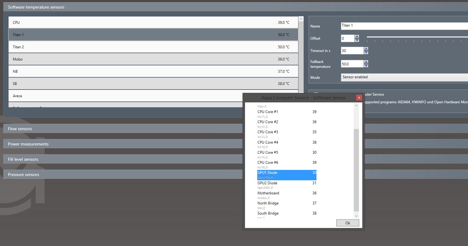 Using AIDA and v3 of Aquasuite 2015, it seems that both GPU temp sensors are not being read properly. This may not be specific to the GPU per se and just my particular issue.