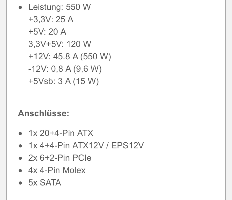 Cx550 Netzteil Corsair 12 v molex Schiene