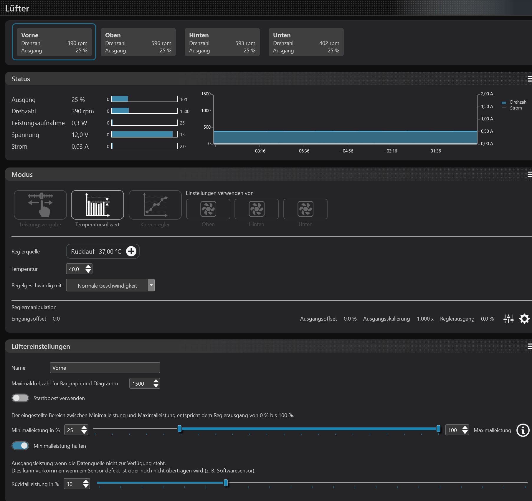 - Die Gehäuselüfter über die Octo auch abhängig von einem Sensorwert ansteuere