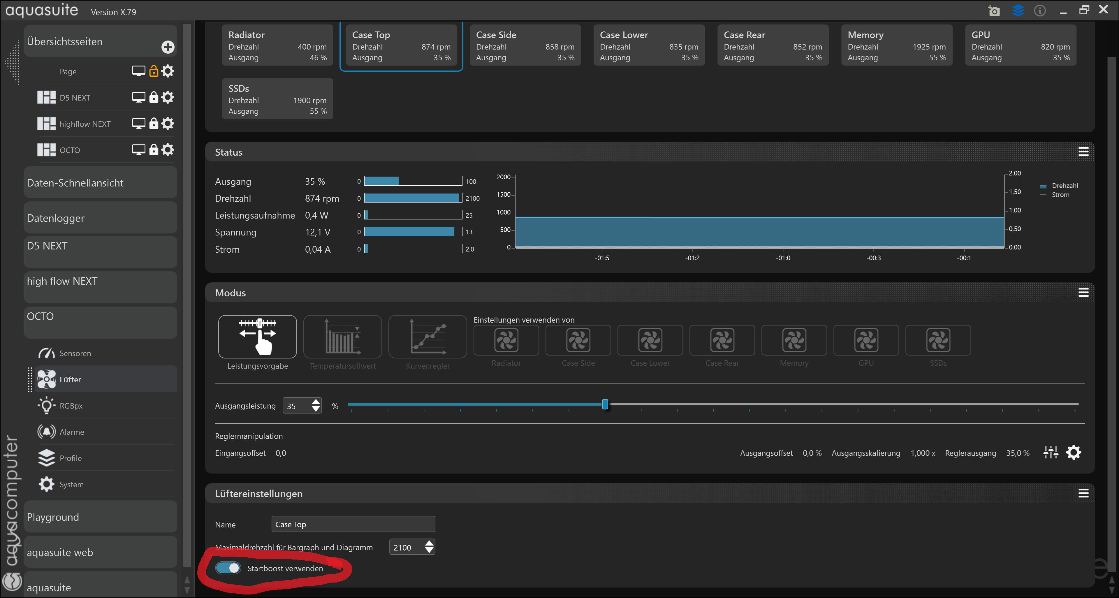 Es wäre jedoch toll, wenn der Startboost in der Aquasuite einstellbar wäre.