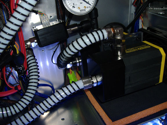 Grundlage ist der Aquainlet, der auf die Pumpe aufgeschoben wird und mittels zwei O-Ringen auf der Pumpe sitzt.