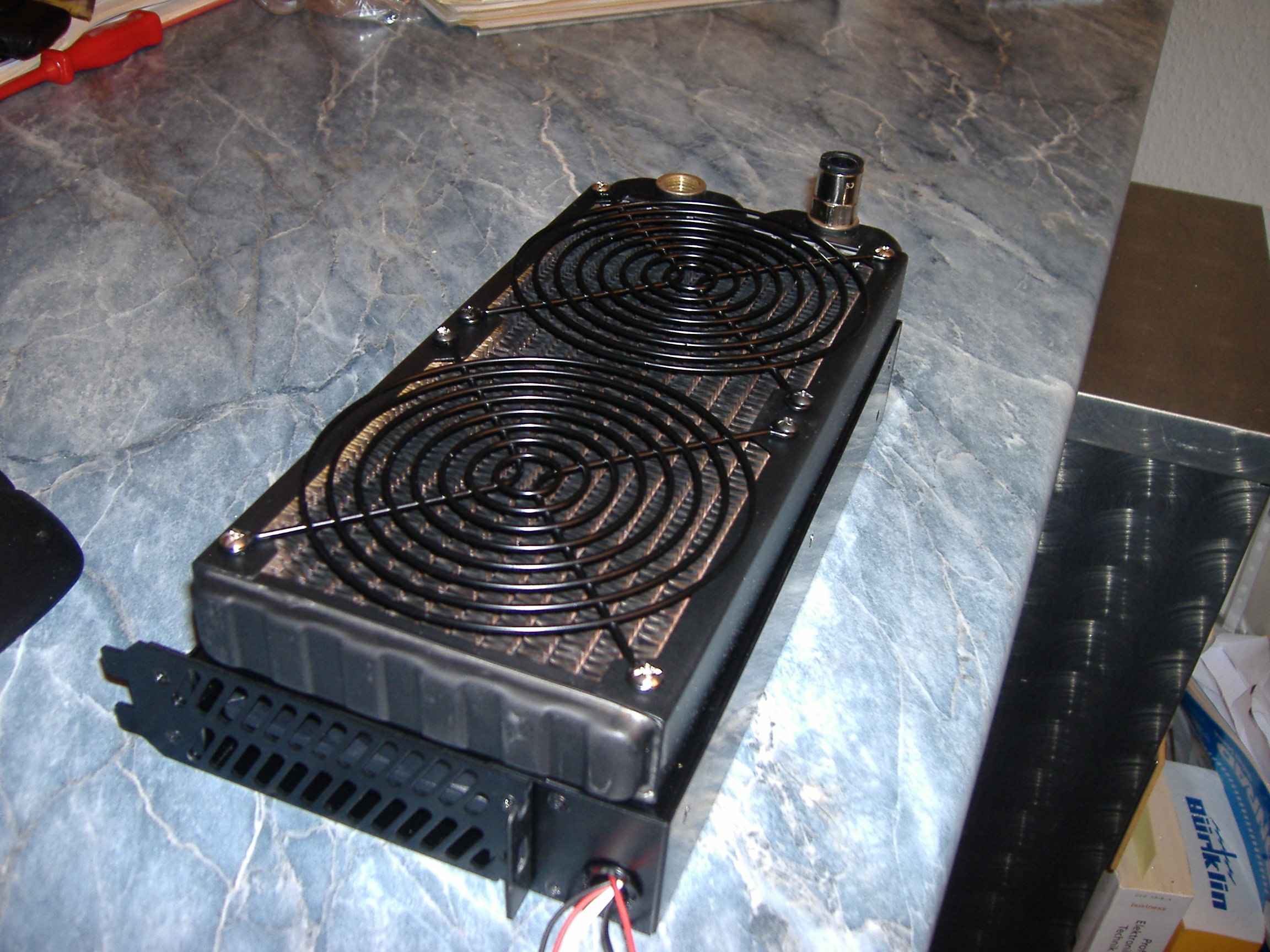 Hab zu Hause aus den Wakü anfängen auch noch CPU GPU und NB Kühler aus Alu als Bohrkühler liegen und für die spätere Ausbaustufe HDD Kühler auch gebohrt und nen selber gefrästen CPU Kühler.