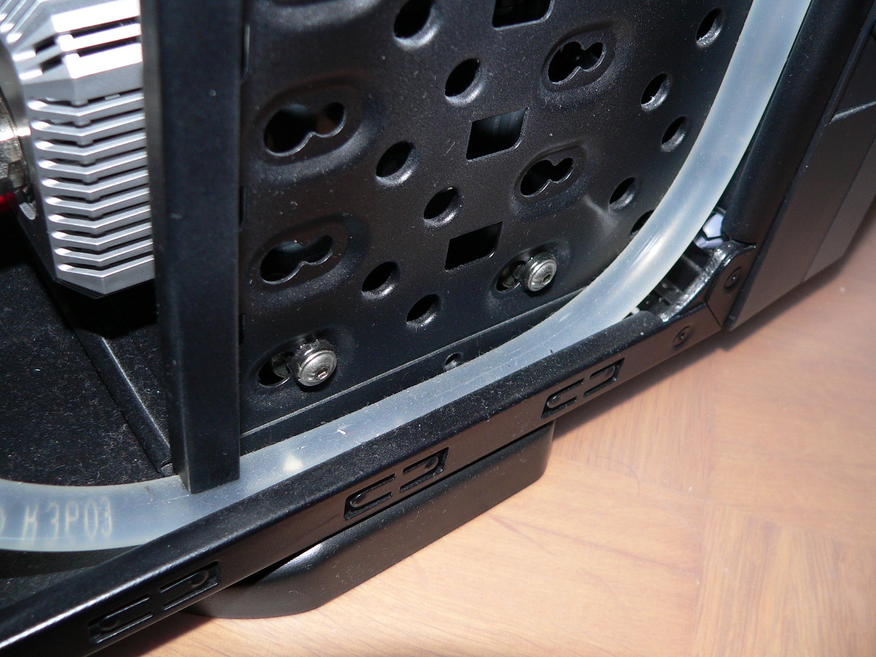 Die Pumpe ist im eigentlichen Festplattenkäfig untergebracht. Da dieser mit Gummitüllen versehen ist, ist die Pumpe durch die Gummipuffer gleich doppelt entkoppelt ;)