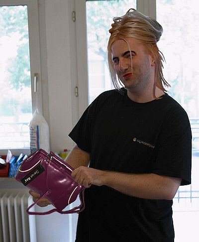 Niko und slame bei der Arbeit mit Webcam, die öffentlich aqua computer Berlin zeigte von Shoggy zum Comic verwurstet :