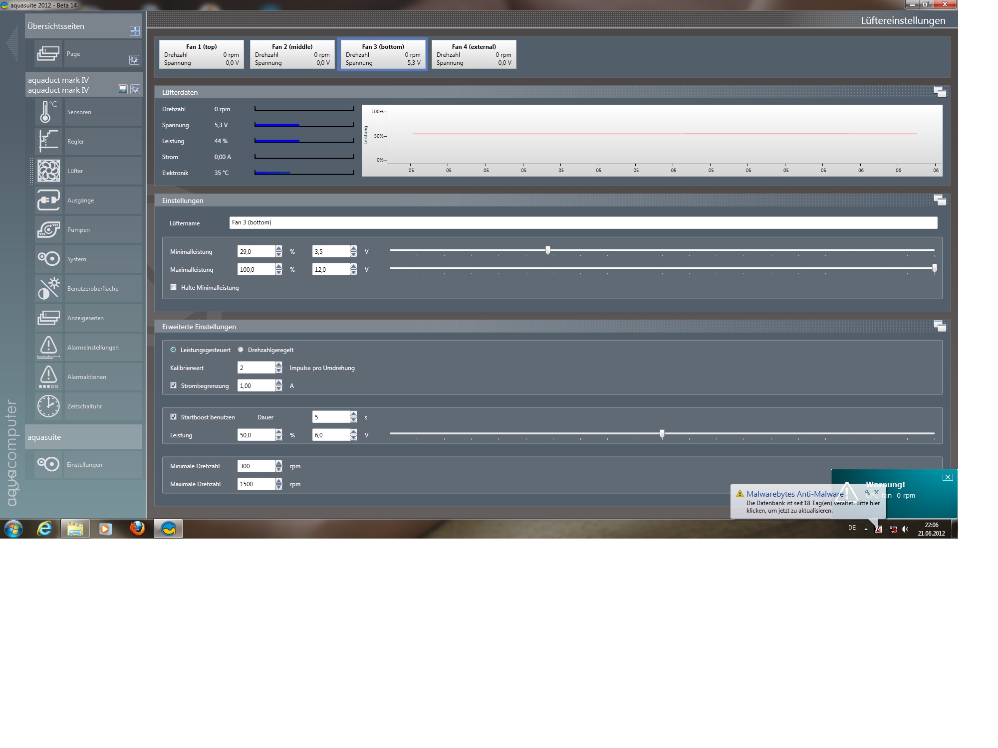Stecht die Lüfter 3 wirklich? (wen ja Testen ob sie bei 100% dreht, wen sie oder einer das nicht tut kannst AC ja fragen ob sie dir andere Lüfter einbauen wen sie das Aquaduct reparieren)