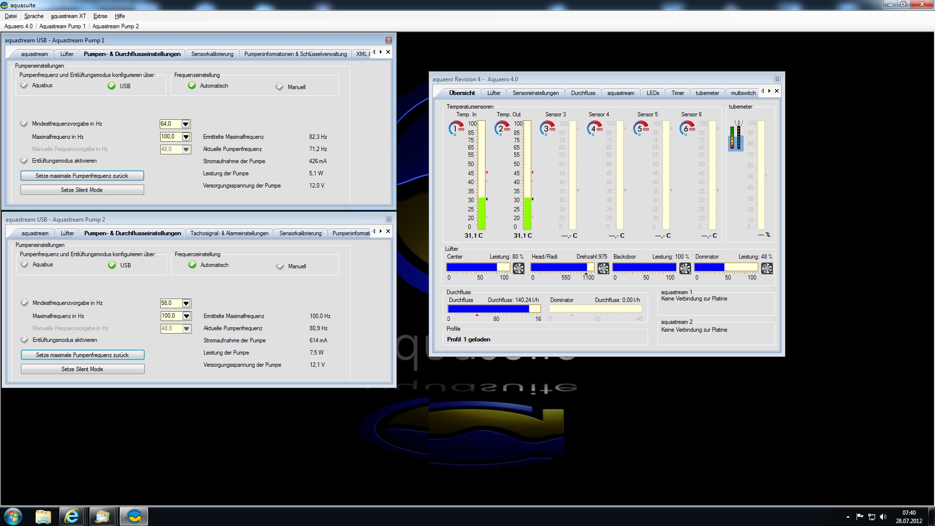 CPU: FX-8150 mit Anfi-Tec AMD Kühler + 2 Aquacomputer Sensoren ( in / Out )