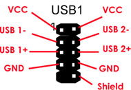 So sehen üblicherweise die USB-Pfostenstecker auf aktuellen Mainboards aus. VCC ist der ROTE-Pin, GND der SCHWARZE Masseanschluss. Ob du einen vierpoligen oder fünfpoligen Anschluss verwendest, hat keinerlei Relevanz, da dies lediglich ein zusätzlicher Massepin ist.