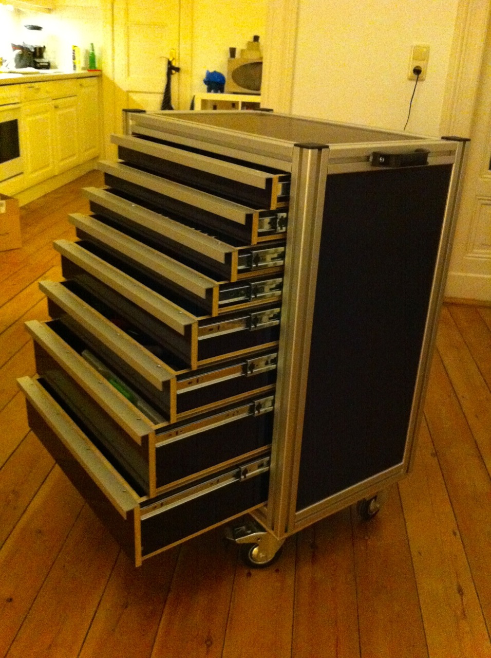 Man wird älter, die Projekte wachsen, man zieht um und von Zeit zu Zeit sammelt sich immer mehr Werkzeug an. Um dem Ganzen Herr zu werden, muss nun ein Werkzeugwagen her. Die man kaufen kann und die mir gefallen (SnapOn, Hazet, Gedore) sind mir zu teuer (darüber hinaus kann ich mir auch keine Palette anliefern lassen :D) und die Werkzeugwagen im Baumarkt fand ich doof, zu klapprig und nicht schön.