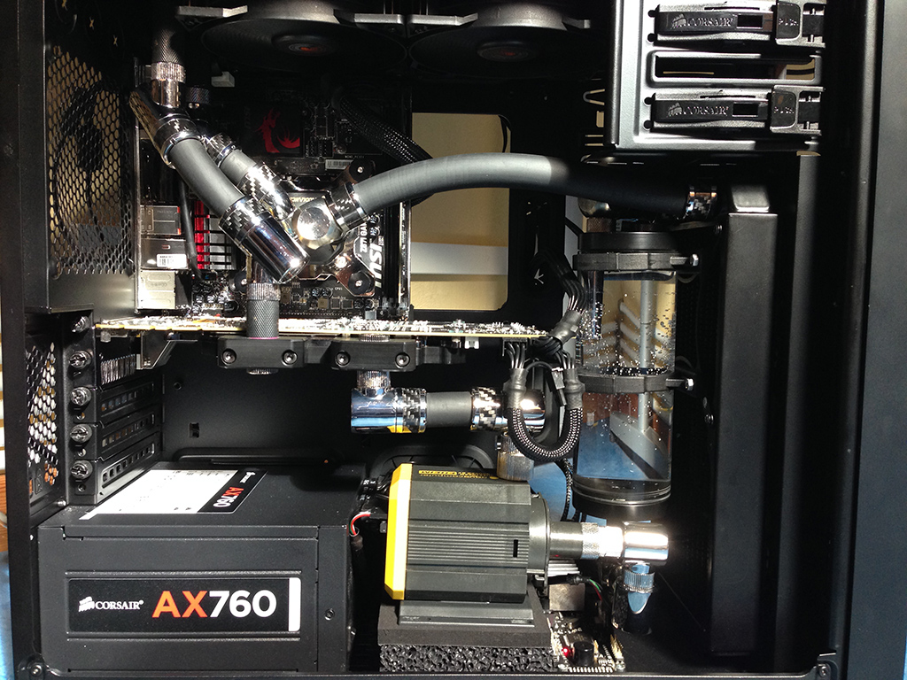 Another solution would be to use the Aquacomputer D5 (qui smaller than the Aquastream but maybe noisier).