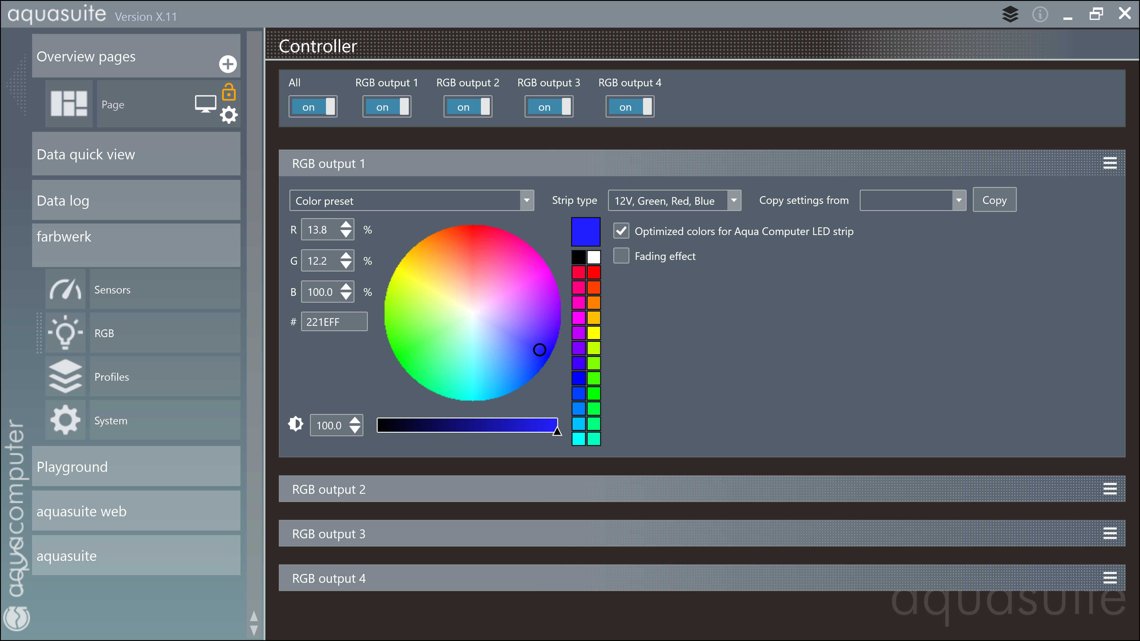 I have one farbwerk with about 20 feet of aquacomp lights---I have another controller on the way