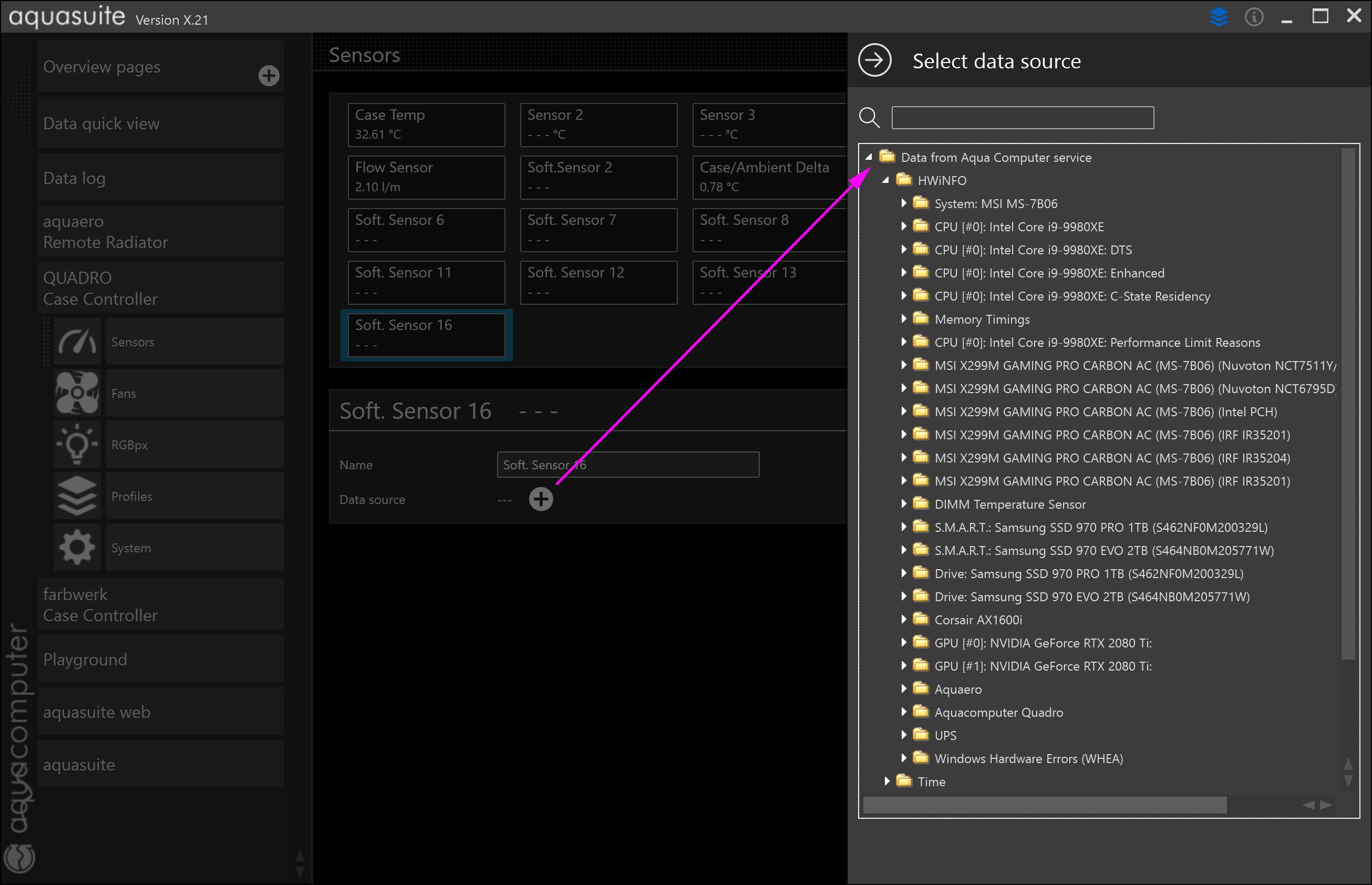 • click on HWiNFO & select the sensor you wish to use for the octo.