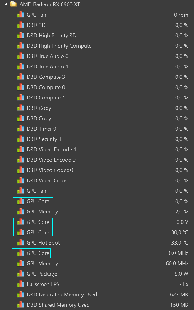 Es gibt mehrere "GPU Core" Werte, die dann in der JSON Struktur landen: