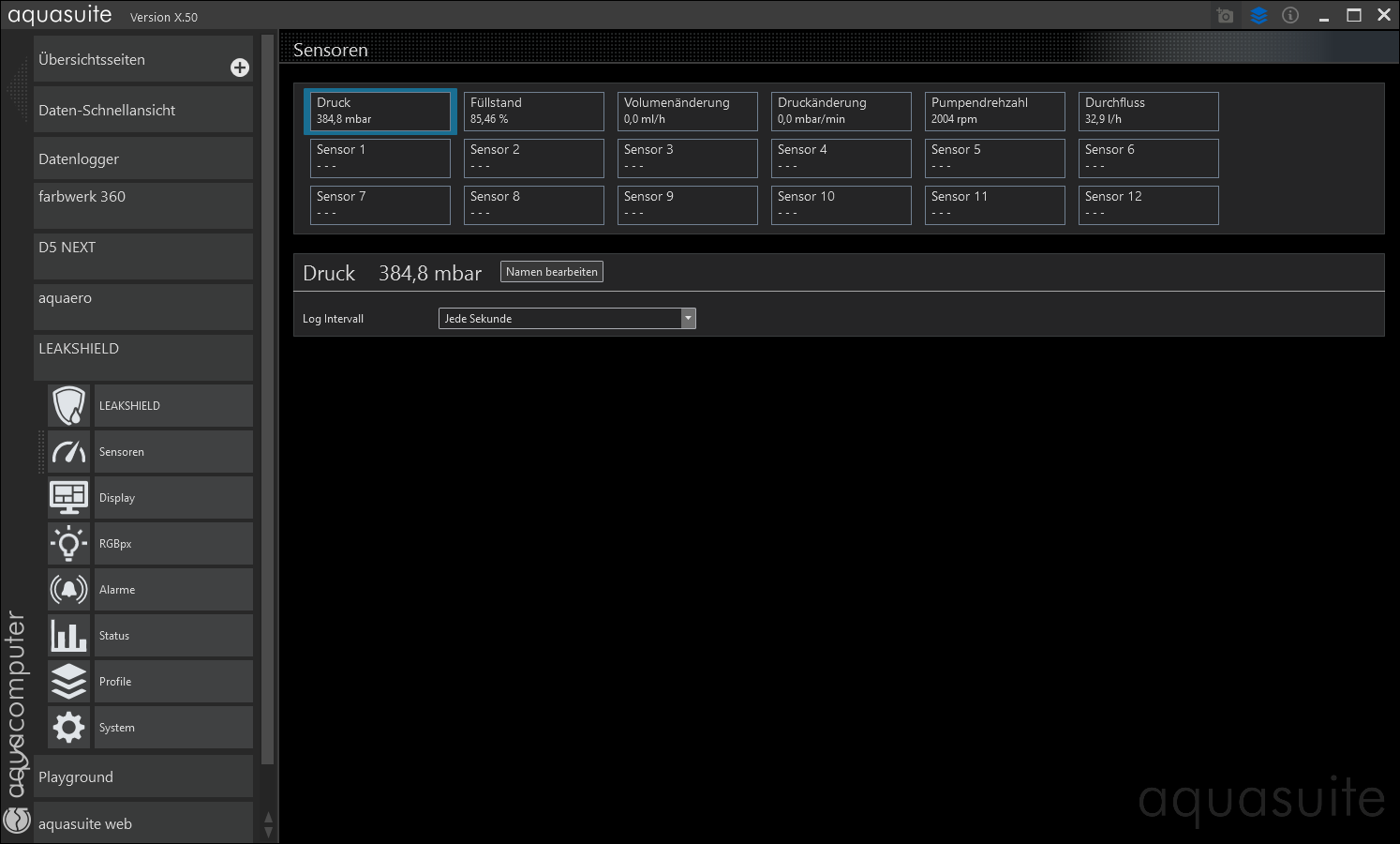 Hilfreich könnte ein Screenshot der Aquasuiteseite des LEAKSHIELD und der Satusseite sein, da ist oben rechts ein Kameraicon, das macht ein Bild des Aquasute Fensters.