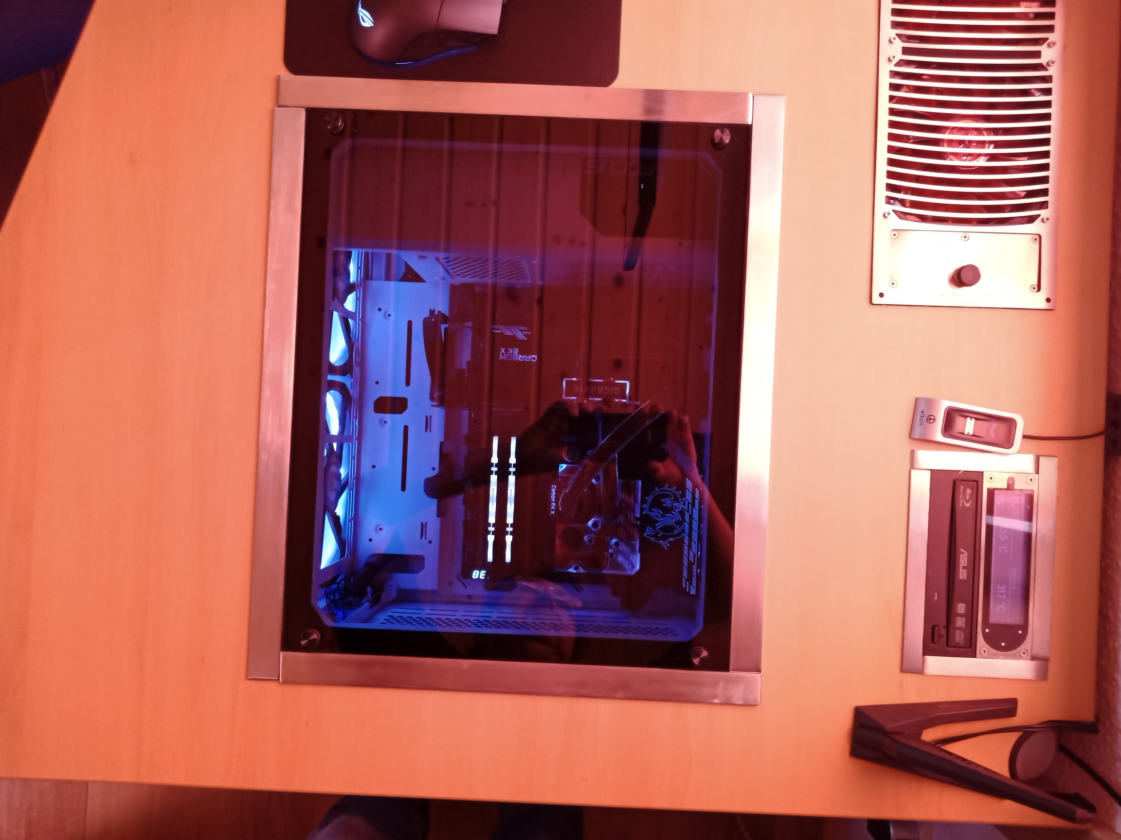 Danke für die Antwort, das Aquaero steckt zusammen mit einem Blu-ray Brenner in einem teiloffenen 5,25 Doppelschacht den ich einem Lian-Li Case entnommen habe.