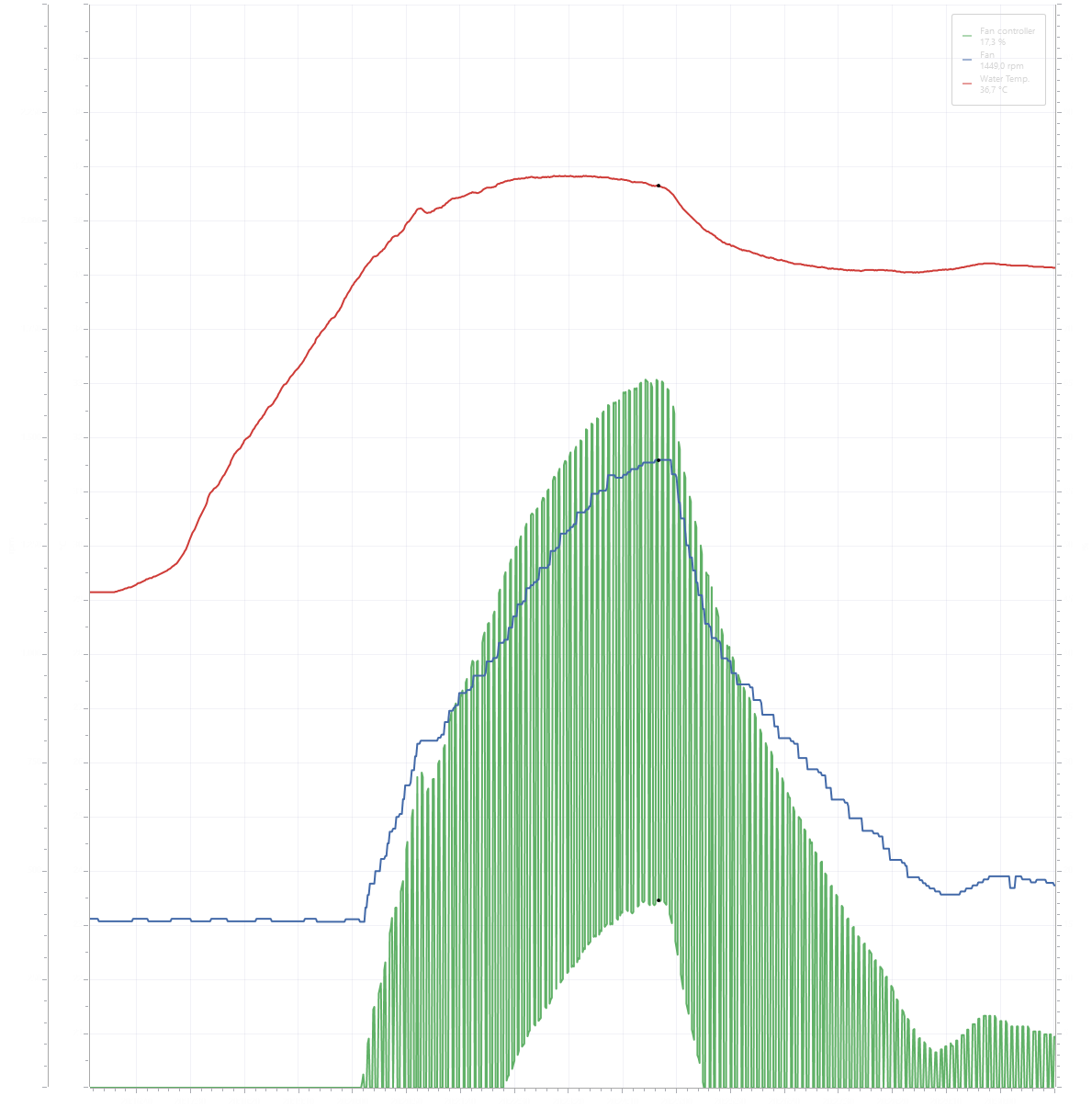 Well AQS does provide the ability to manually enter values for Factors P. I, D, Hysteresis, and a Reset Time for Factor D if you select Target Temperature mode and then User Defined. I found that if you select one of the presets first (Fastest, Faster, Normal, Slower, Slowest) and then User Defined, you can see what values AQS sets for each preset. I guess you could try them all and graph the resulting curve for each one. If you still felt that all of these presets were not acceptable, once you see how the values affect the curve you could make an educated guess of what values to enter to get whatever response you are after. I think OP is saying that with the PID Loop Simulator he should be able to predict the outcome of entering these values. Then if you know exactly what response you want you can calculate the values to enter to get that response. I may be confused about this. It's interesting, but I have found the curves AQS provides are sufficient for my needs. This is one of the many features in AQS that you can tinker with, and I guess OP is compelled to tinker with it. I am curious how this will develop.i asked because from the curves i see, it seems you're basically recreating the existing. By controlling the fans from water temperature, or the delta between ambient and water temperatures (quieter if you have temperature swings in the room), you get to the same result.