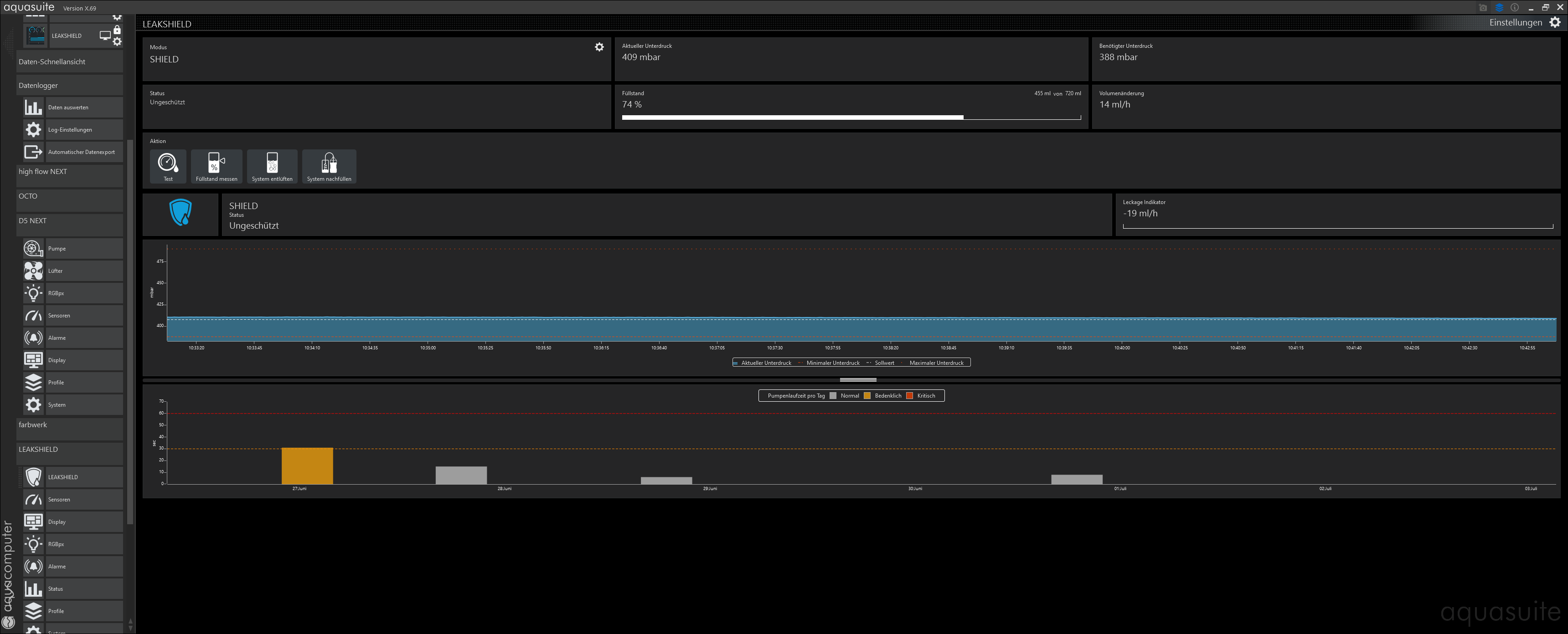 Wenn ich in den modus SHIELD wechsel, baut das system einen Unterdruck von ca 410 mbar auf was meines erachtens auch ok ist. Im Status wird dann allerdings Ungeschütz angezeit