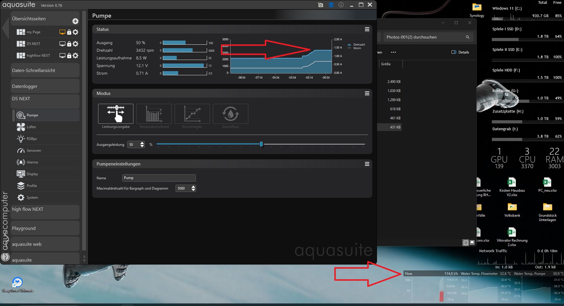 Du kannst auch bei der D5 Next einmal den virtuellen Durchflusssensor einrichten und schauen ob sich hier dann das gleiche Phänomen zeigt. Die absoluten Werte werden sich schon mehr oder weniger vom High Flow Next unterscheiden - es geht hier um das grundsätzliche Verhalten