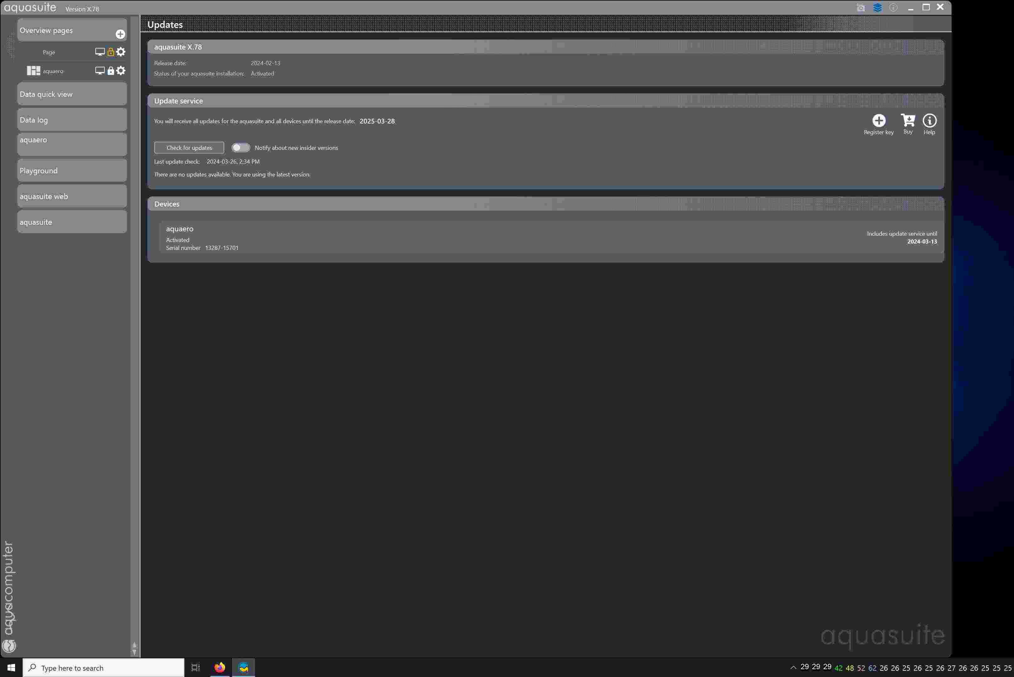Few days ago I have purchased and applied my aquasuite subscription key and afterwords it would show "Includes updates service until 2025_03_28. Today shows until 2024 which was before I updated subscription. I only registered my aquaero 6XT.