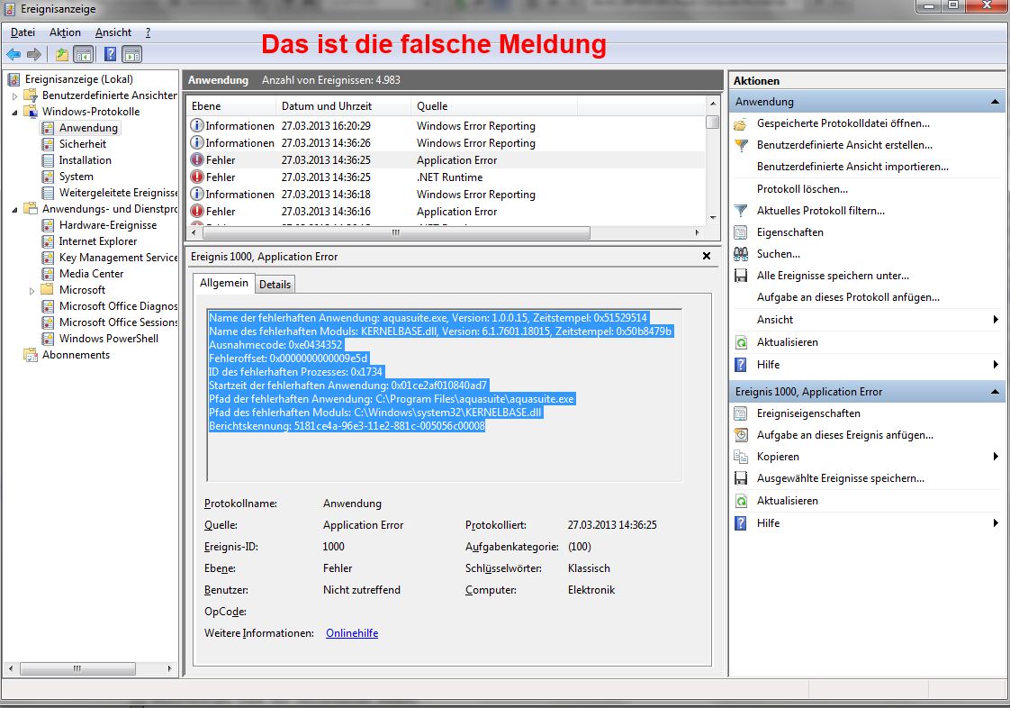 Bitte schicke uns einmal per Mail die Fehlermeldung aus der Windows Ereignissanzeige.