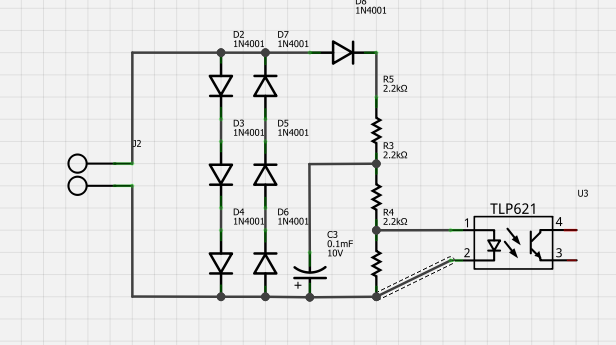 An den Dioden Fällt nur strom ab wenn die Lampe wirklich an ist, in dem Fall fallen 3x0,7v ab der Optokopler benötigt ca 1,4 V.