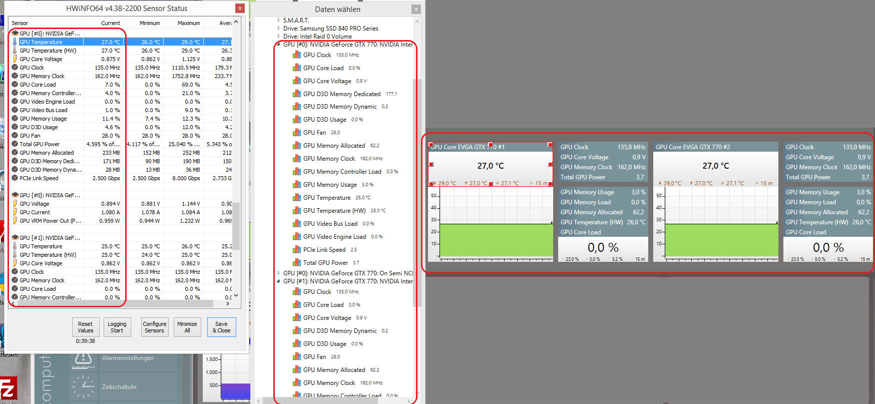 Leider stoße ich dabei auf merkwürdige Probleme, insbesondere mit den Sensorwerten meiner 2 NVIDIA GTX 770 Karten im SLI Betrieb.