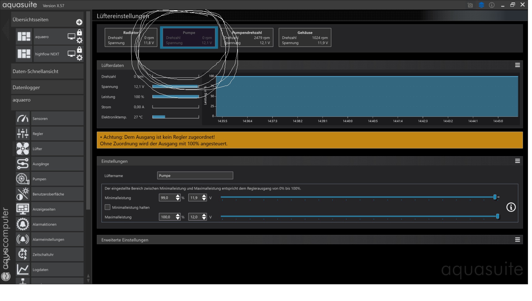 Wenn die Pumpe über Aquabus am Aquaero angeschlossen ist, dann liegt das an der verwendeten Aquabus Adresse der Pumpe.