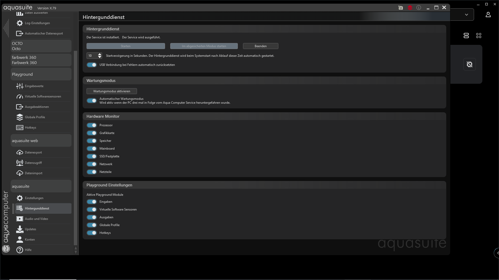 Monitoring von Aquasuit läuft nicht trotz Aktivem Dienst