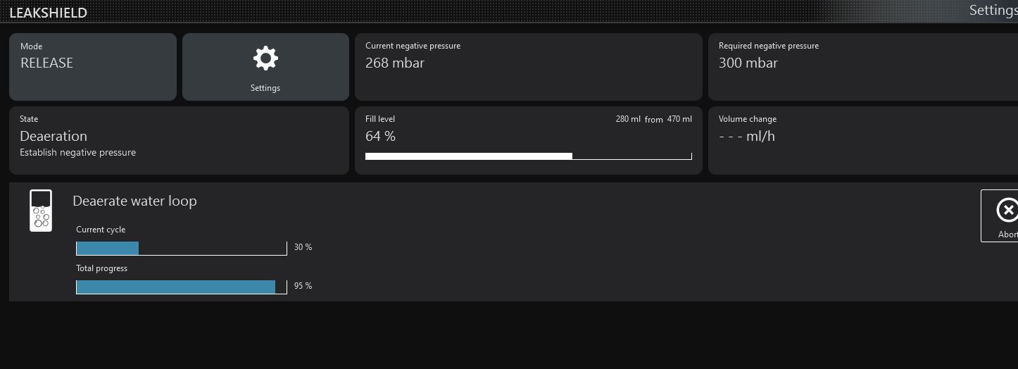 Every time I do the test, the negative pressure keeps building but as soon as it reaches 300, it immediately goes down to around 270 and then continues the deaeration cycle while at around 265-270 instead of 300. When the cycle is completed, the same process starts over.