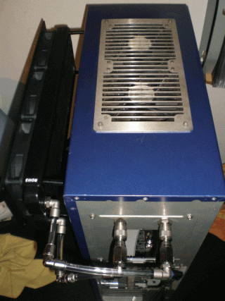 Hol dir einfach eine Blende für die SLots mit 2 Durchführungen für die Schläuche und leg den 360er hinter den PC, am Besten wo man ihn nicht sieht. Durch die kalte umgebungsluft und 7V 12 Lüfter sind deine Tempprobleme für geschätzte 80€ passe.