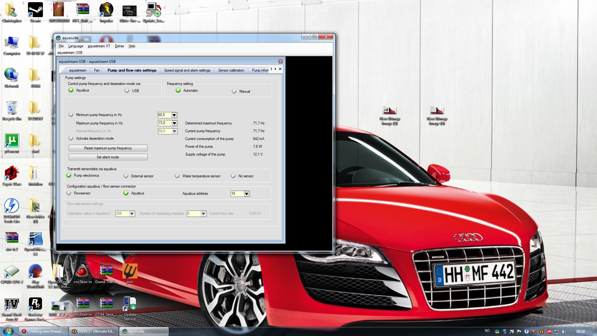 For the flow sensor: keep in mind that the pump has no internal sensor. If offers only the function to use an optional sensor which must be attached to the pump. In this case you will have to change the configuration of the aquabus/flow connector to flow, save the settings into the pump and perform a restart (on/off).