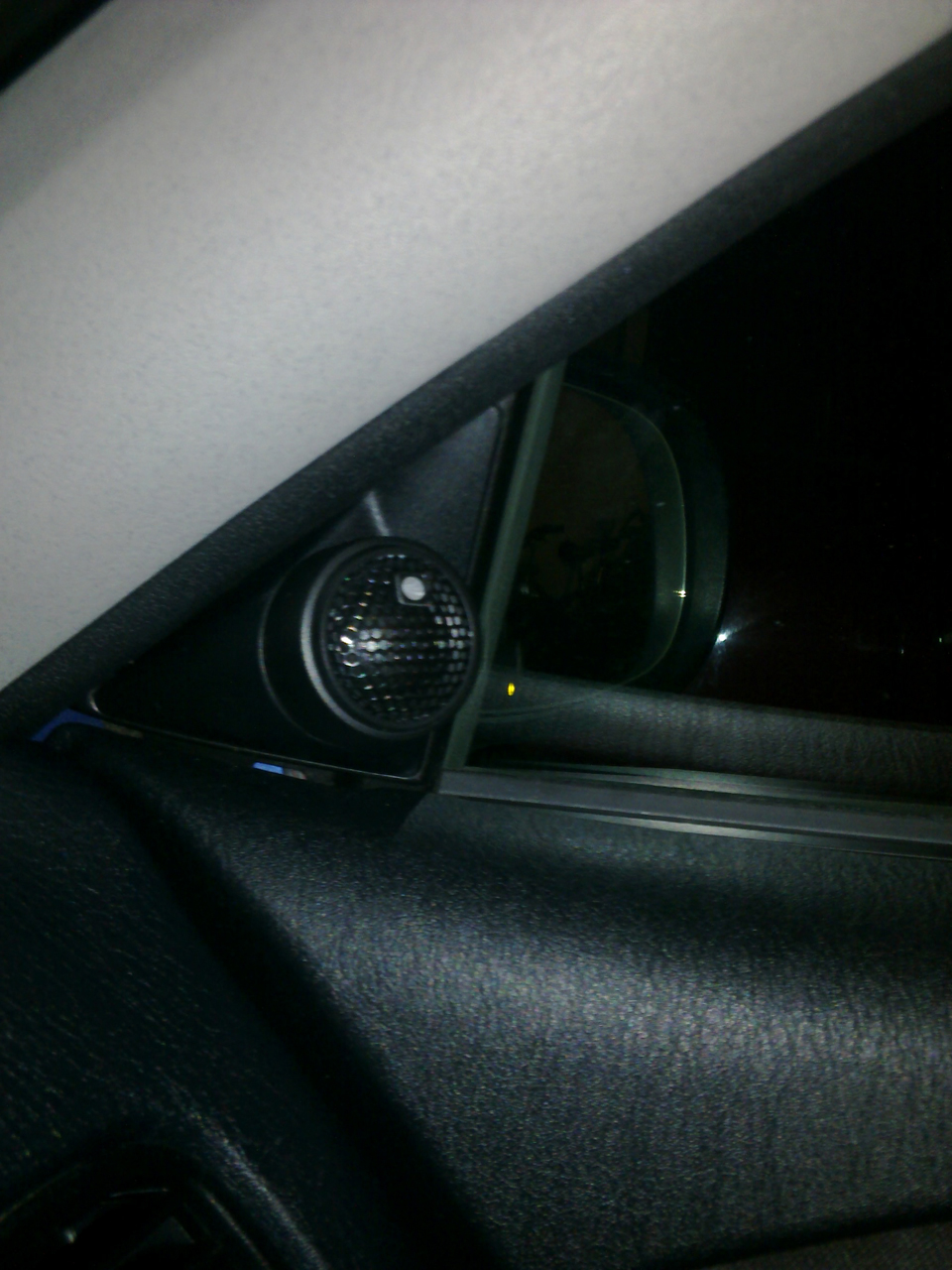 Ich war heut mal in der Werkstatt und hab mich erkundigt was neue Abdeckungen kosten, falls die Bastelversuche schief gehn und da die spottbillig sind, hab ich einfach mal ausprobiert wies aussieht, wenn ich die Hochtöner auf die Abdeckung drauf schraub.