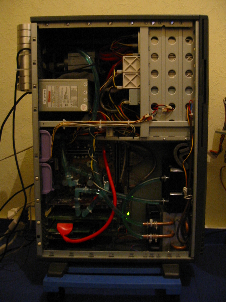 1999 als ich mitm Kumpel die ersten Wasserkühlblöcke aus ner stange kupfer sägte, schliff, polierte, Kanäle bohrte und Anschlussrohre und Kanalenden bei nem nachbarn lötete...
