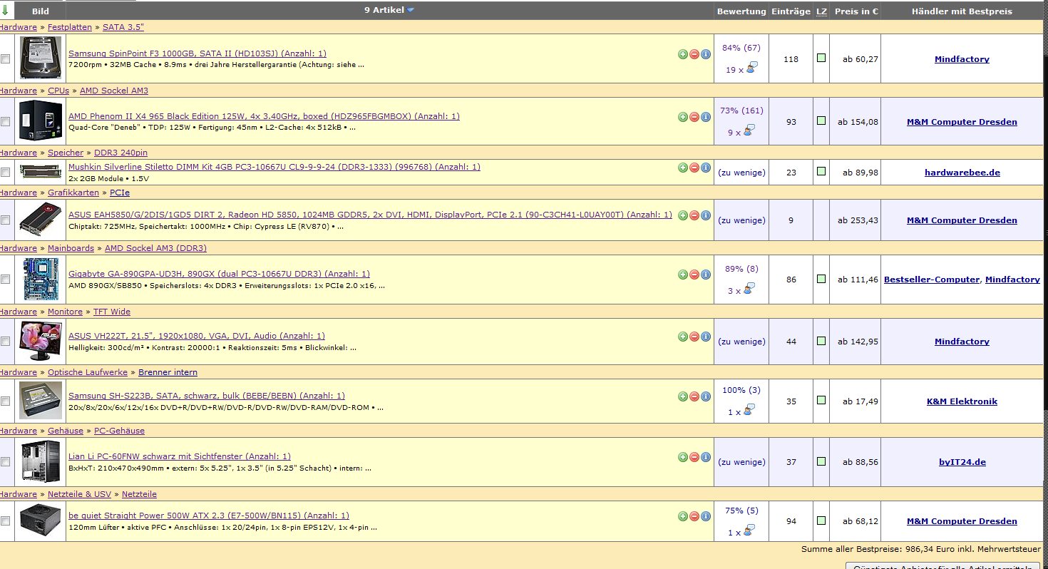 Mein Freund sucht einen neuen, guten Gamer PC und hat mich gefragt ob ich ihm einen zusammen stellen kann. Da ich mich aber mit der derzeitigen Hardware nicht zu 100% auskenne frage ich euch um rat. Sein Preislimit liegt bei 1000€. Ich habe schon mal so grob geschaut und das ist dabei raus gekommen: