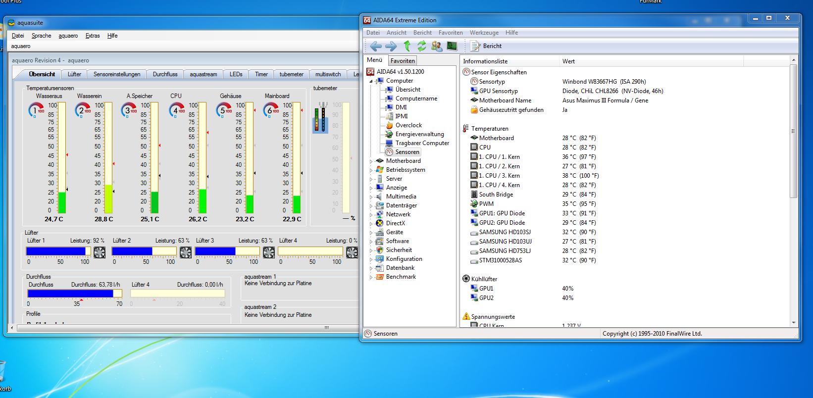 Lol, geilSeit heute läuft bei mir eine GTX 570. Das Teil wird so heiß, das die aufsteigende Wärme den Sch... trüben, UV Aktiven AC Schlauch so warm macht, das die Anschlüsse am CPU und Northbridge Kühler undicht wurden. Das Wasser tropfte schön auf die Graka. Nach ein paar Minuten viel Monitor Nr. 2 aus. Wenig später auch auf Monitor 1 Probleme.