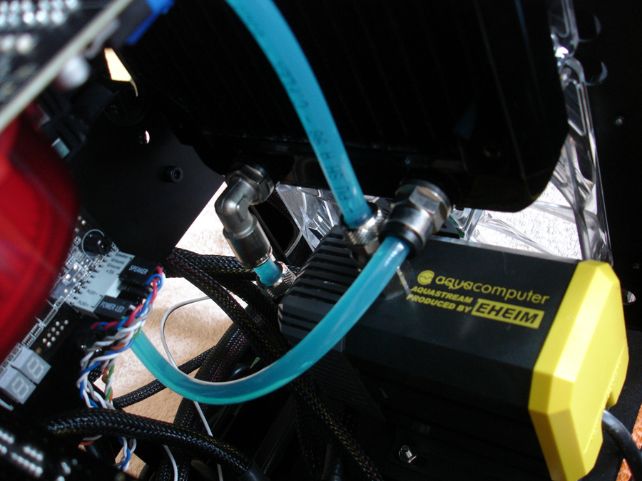 ... selbst wenn ich dort nen 420er unterbringe, muss an dieser Stelle die Pumpe stehen. Nächstes Problem: Die Kabel aus dem Netzteil berühren sicher irgendwie die Pumpe und nehmen vermutlich Vibrationen auf. Das wäre das zweite Problem ...