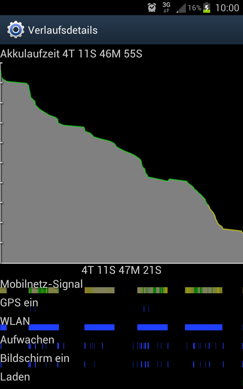 ne... ist ein bekanntes Problem beim Optimus Speed.15 Stunden leer ?! Da is sau der Witz, das muss mit der Betriebsversion oder App Kombi zusammen hängen. Geht dein LG vielleicht nicht in den Deep Sleep Mode ? CPU Spy, kann sowas auslesen.. Mein S2 hält mit gelegentlich Mails checken und paar SMS aufjedenfall 3 Tage ... wobei der dritte Tag dann wohl so bei 20% wäre, was mir für den Notfall eh zu wenig wär![]()