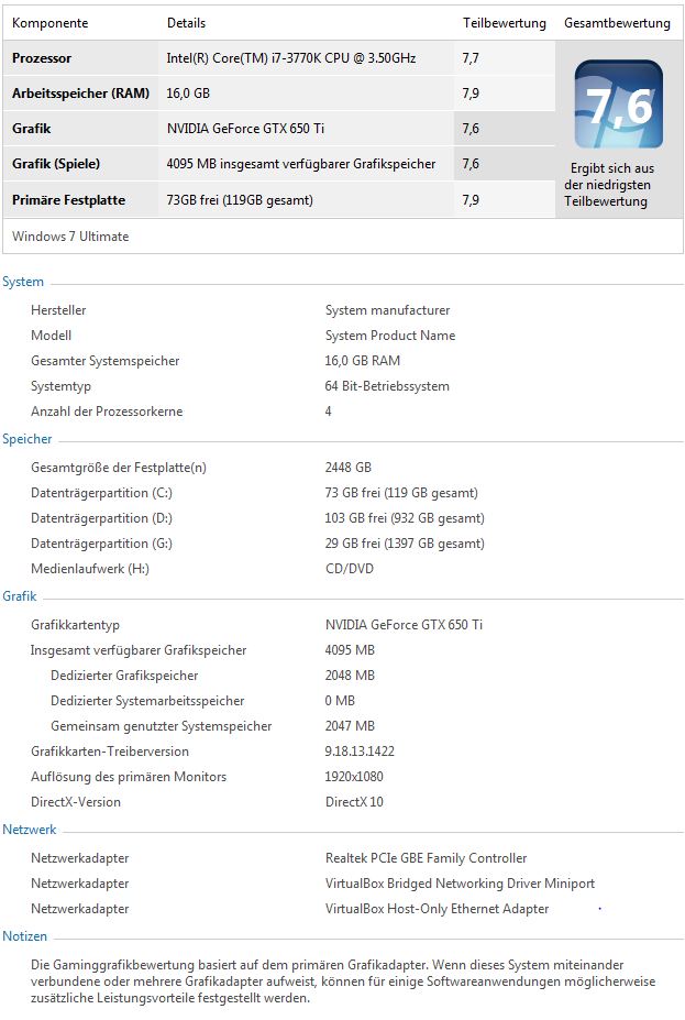 Hallo da ich soeben meinen Rechner fertig gestellt habe fragte ich mich wie hoch hier wohl die Windows Bewertungen sind :D