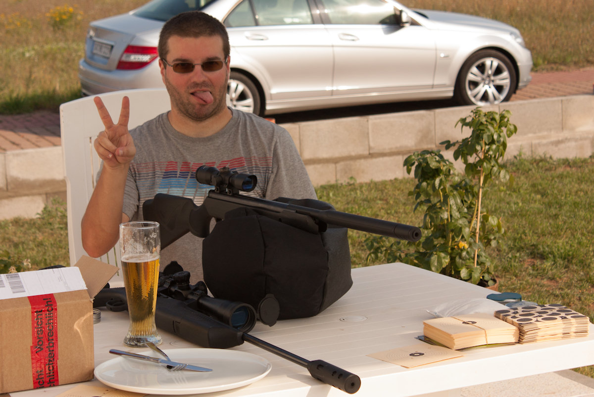 Ein schöner Samstag Nachmittag beim Kumpel auf der Terrasse. Sonnig, 27°C, Fleisch auf dem Grill und Spaß mit den Luftgewehren... :D :thumbup: