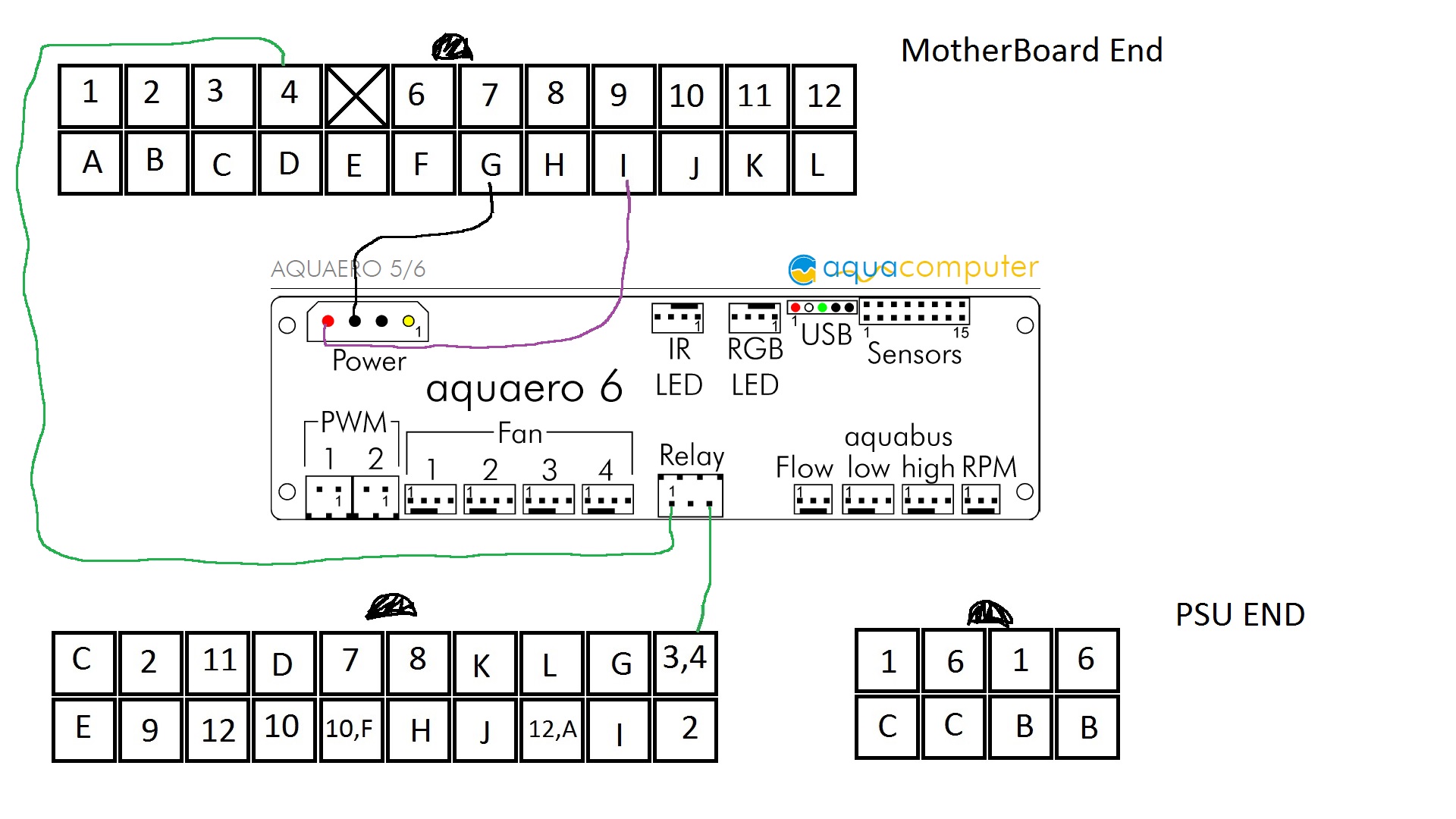 So the Stand By Power if I were to connect it comes like this, together with how you depicted the Connection using the Aquaero 6 Board would be like this, notice the Motherboard End and the PSU end of the connectors (i believe that does not matter, doesnt it ? i mean from which side come the green cable in which slot of the relay):