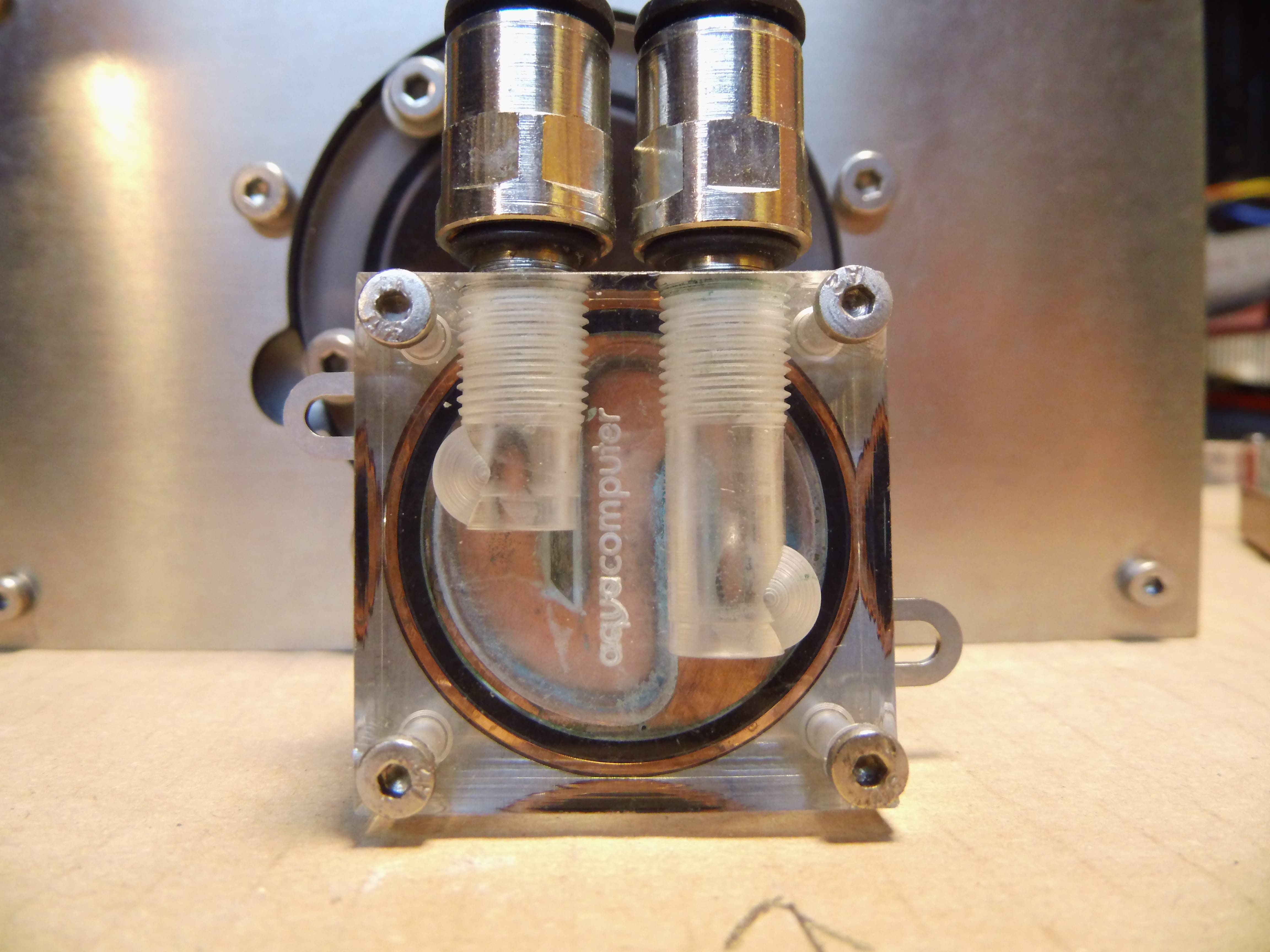 Bild 1 ist ein Ausgleichsbehälter(mit 3 verschraubungen) in einem Aquabay,die verwendung ist mir klar,nur wie befülle ich das ding wenn es im 5,25 zoll schacht hängt?