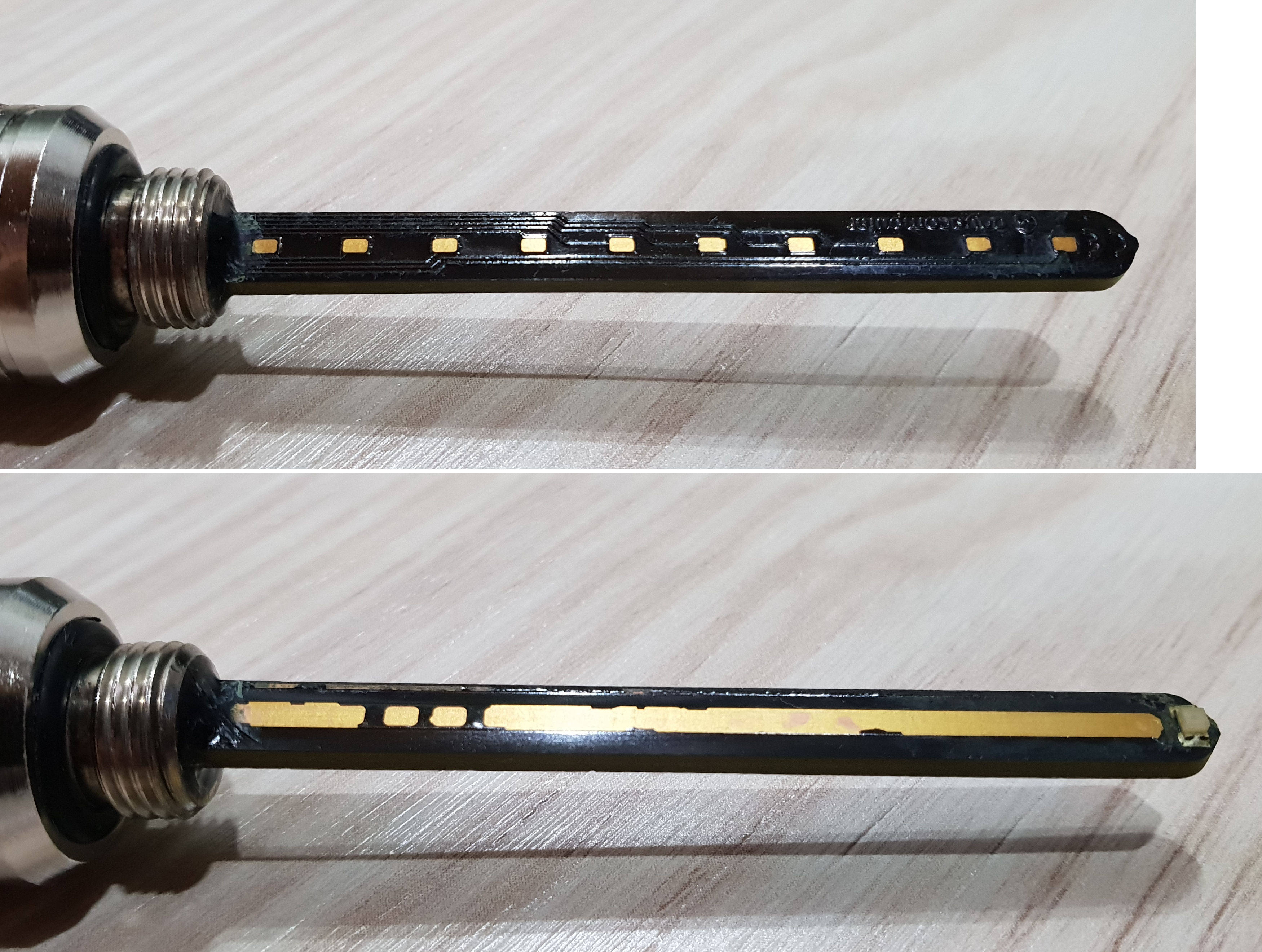 wenn du auf Nummer sicher gehen willst versiegelst du mit irgend einem Lack oder Kleber noch die Fräskante an der Leiterplatte neu. bzw. alles ausser die Kontaktflächen am Sensor.