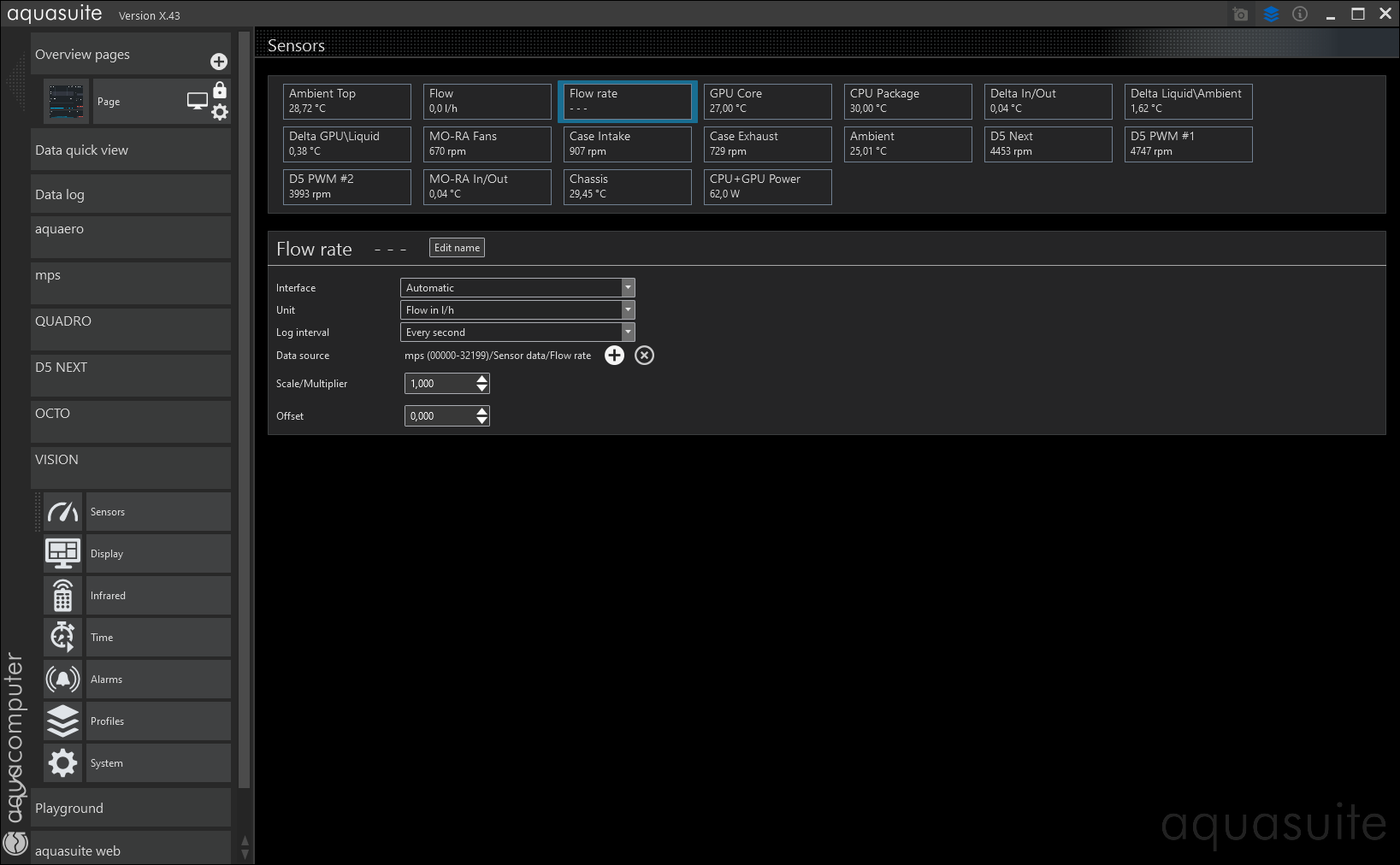 I wondering why my Aquasuite looks completely different... Anyway, make sure that the fans are in the correct mode: [url]https://i.imgur.com/bXrlDWP.png[/url]