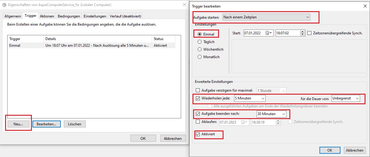 Fertig, wenn analog zu Screenshots eingestellt wird nun das Script alle 5min den Service prüfen und ggf neustarten.