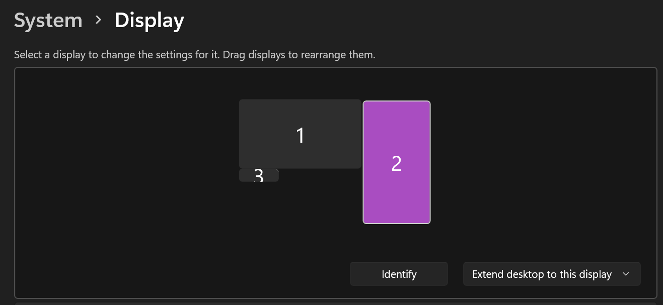 Sorry it is fuzzy, your website refused to upload the full resolution version (giving an unhelpful, misleading error message incidentally). The screenshot is the entire virtual screen. Physical screen 1 (3840x2160, 150%) has 'Display Settings' maximised. Physical screen 2 (2160x3840, 150%) is the 'main display' showing 'Winspector' maximised. Physical screen 3 (1280x400, 100%) has 'Aquasuite' maximised. Note that I moved screen 3 to a new position specifically so it has positive virtual coordinates.