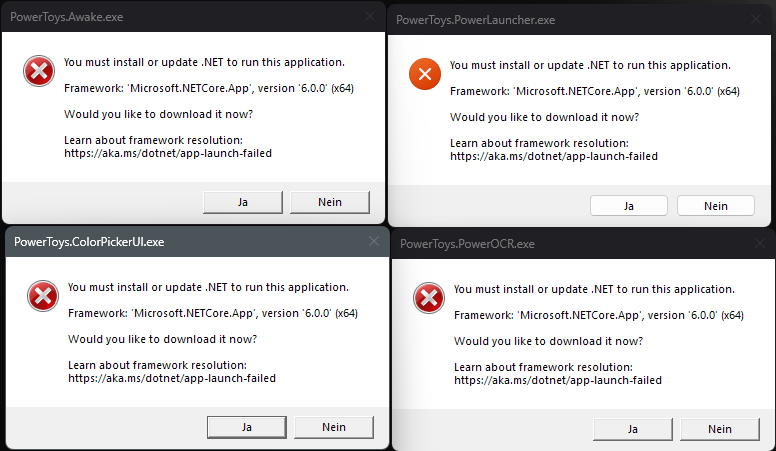 Bei mir wird die Installation nur mit der .NET Runtime verweigert -> nicht gefunden