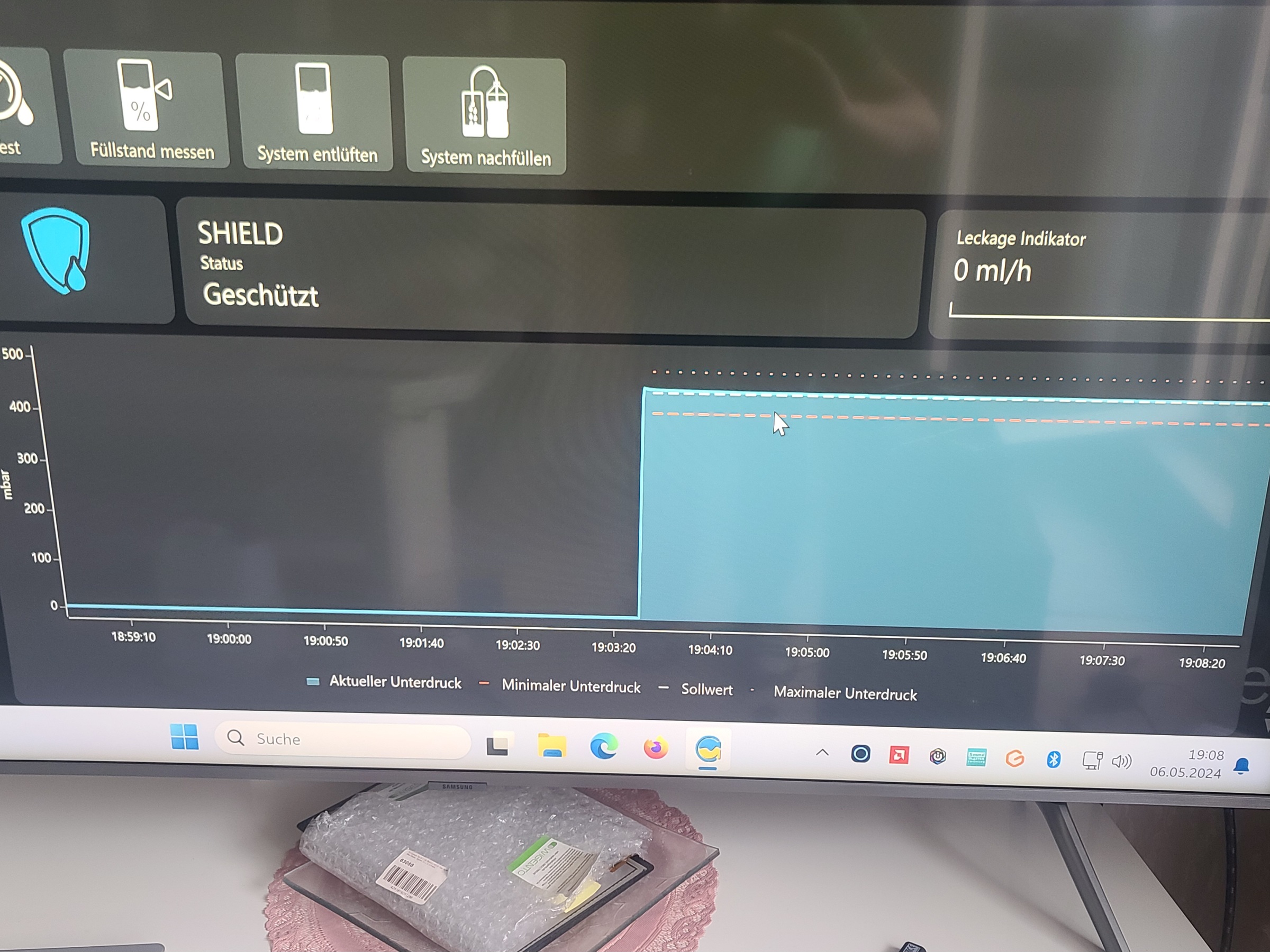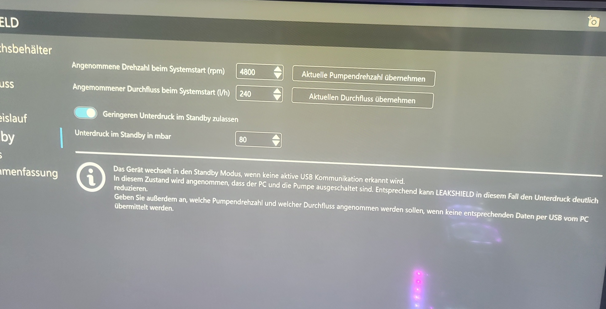 Das LEAKSHIELD misst das komplette Luftvolumen im System, also auch die Luft in den Radiatoren und Blöcken und das im Schlauch zum LEAKSHIELD.