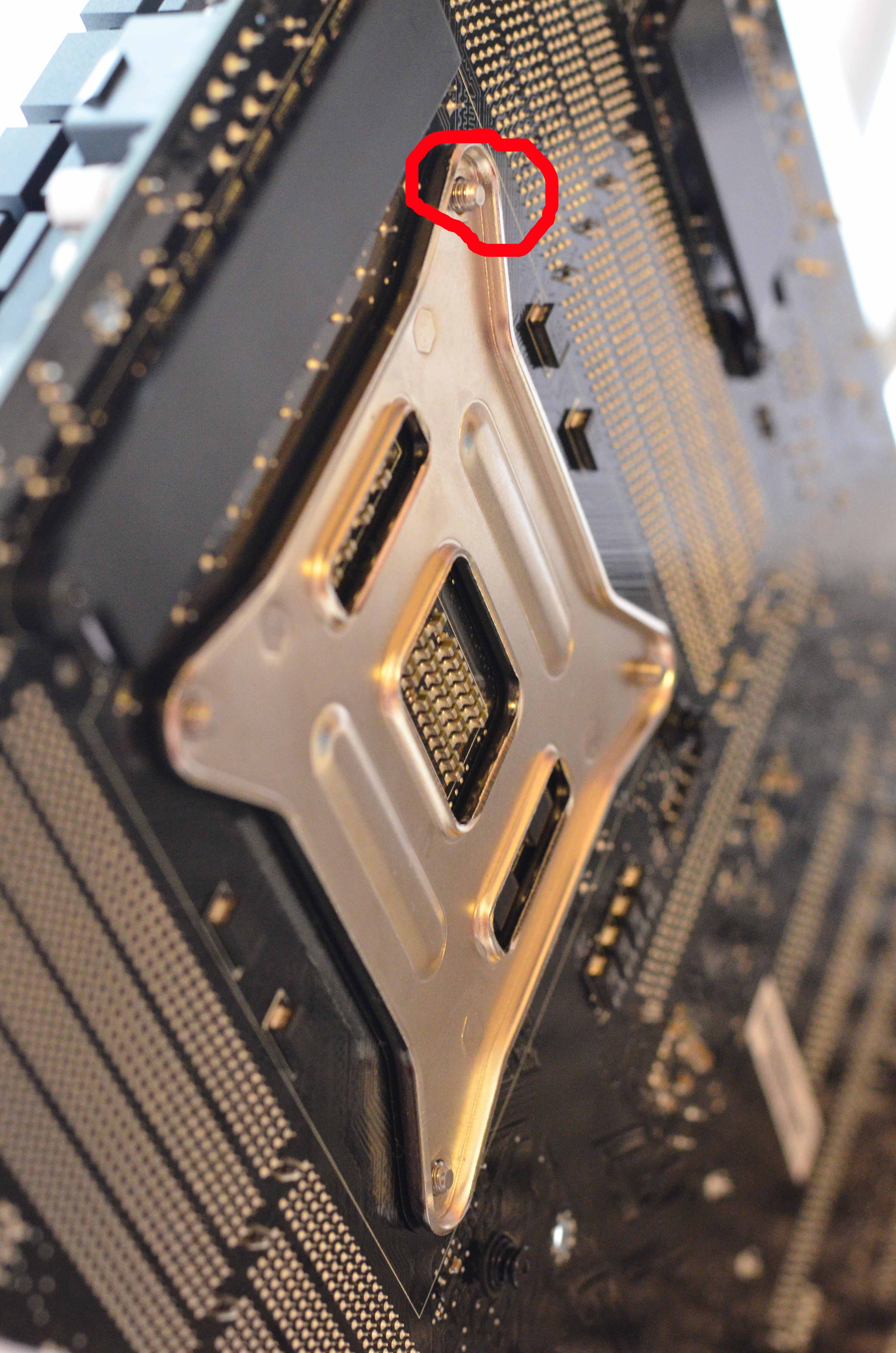 ich habe gerade versucht den oben genannten Kühler an mein Rampage Extreme IV Board anzubringen, leider sind die Abstandsbolzen des Sockel 2011er Schraubensets so kurz, dass es nur mit enormen Kraftaufwand möglich ist die Rändelmuttern samt Federn auf die Abstandsbolzen zu befestigen, da die Federhärte so stark ist. Des Weiteren dreht sich beim Anziehen der Rändelmutter der Abstandsbolzen mit, so daß dieser sich immer tiefer durch das Befestigungsgewinde des Sockels schraubt. Was mache ich falsch? Ich habe mich strikt an die Montageanleitung gehalten. Anbei im Anhang 2 Bilder die das Übel veranschaulichen.