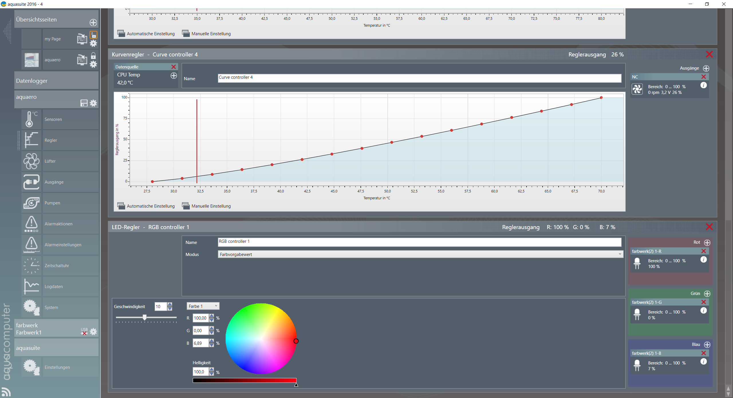4. Ich setzte im Aquaero 5 Ausgänge Tab alle Farbwerk Ausgänge auf Direkt Benutzen um die Farbwerkausgänge bei meinen Aquaero Reglern auswählen zu können (Ist dies korrekt so?)